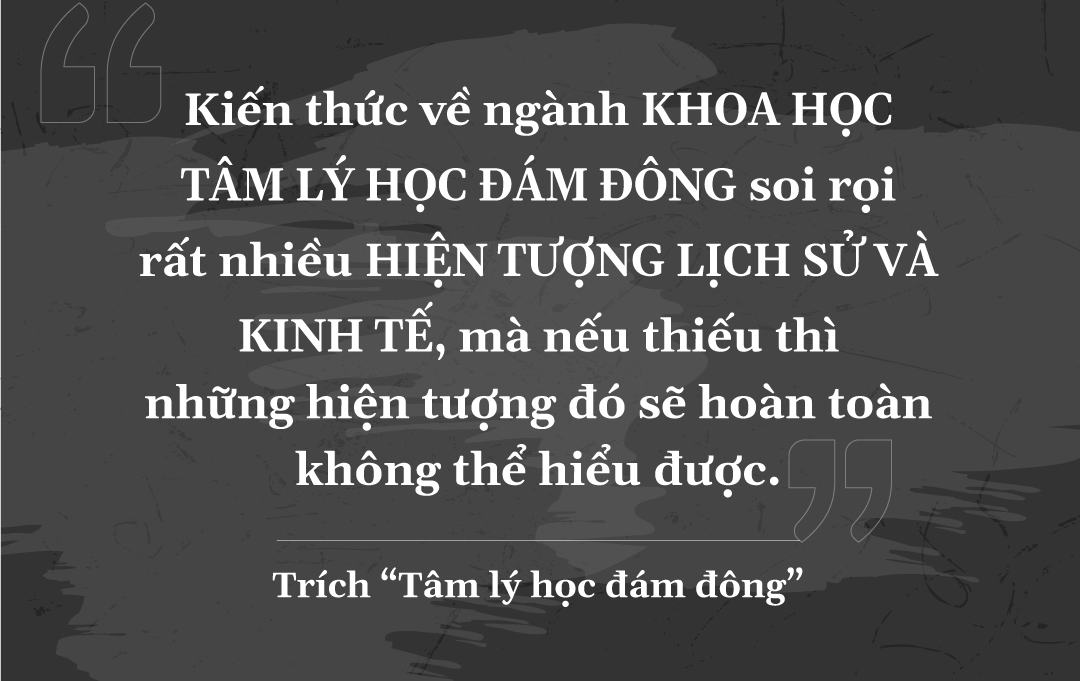 Gustave Le Bon (1841-1931) là nhà tâm lí học, xã hội học người Pháp nổi tiếng với những công trình như “Những quy luật tâm lí về sự tiến hoá của các dân tộc”, “Tâm lý học đám đông”, “Cách mạng Pháp và tâm lí học của các cuộc cách mạng”. Ông được biết đến nhiều nhất với những nghiên cứu tiên phong về tâm lý đám đông, được trình bày trong tác phẩm “Tâm lý học đám đông” xuất bản năm 1895, đây được coi là một trong những kiệt tác kinh điển của thế giới, vẫn luôn được quan tâm và nghiên cứu trong thời đại hiện nay.