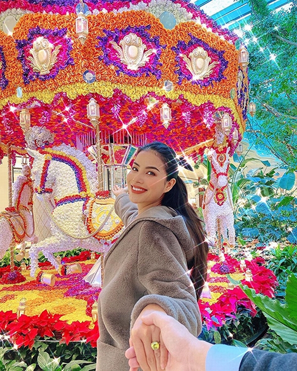“Cùng em đi khắp thế gian. Dù ngoài kia bao la sóng gió, chỉ cần bé nhỏ bình yên bên anh và hoàng tử bé là đủ”, Phạm Hương bình luận về bức ảnh của mình. Tuy vậy fan lại chú ý đến chiếc nhẫn kim cương mới trên tay của người đẹp. Trước đó cô từng khoe hai chiếc nhẫn màu trắng khác.