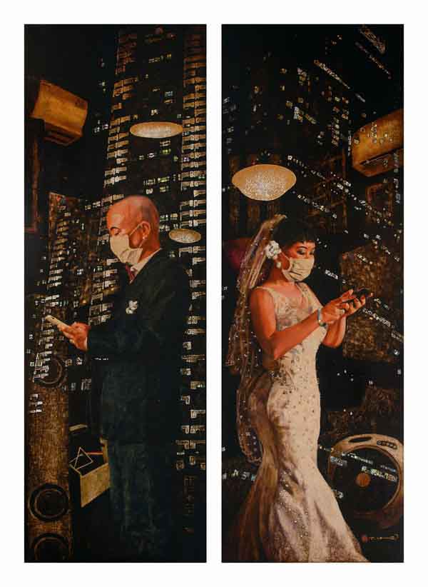 Tác phẩm đám cưới mùa Covid-19 của họa sĩ sơn mài Trần Tuấn Long