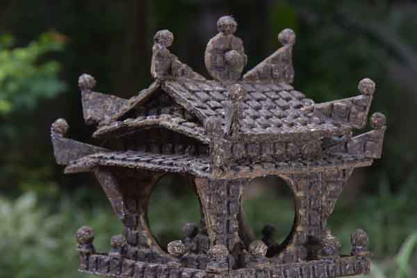 Những lá trà cổ thụ ép thành bánh, tạo muôn vàn mô hình lấy cảm hứng từ các hình tượng di sản kiến trúc, biểu tượng của Hà Nội với chùa Một Cột, Khuê Văn Các, Tháp Rùa, Ô Quan Chưởng… cho đến các hình thái nhà ở của người H’mông, Dao, Thái… được gã “dị nhân” của làng trà Việt – Phạm Vũ Khánh thể hiện.