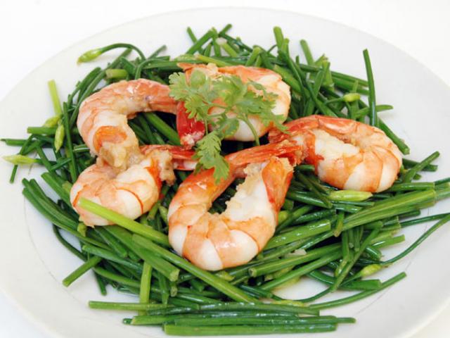 + Chuẩn bị: 250g tôm nõn, 200g rau hẹ.