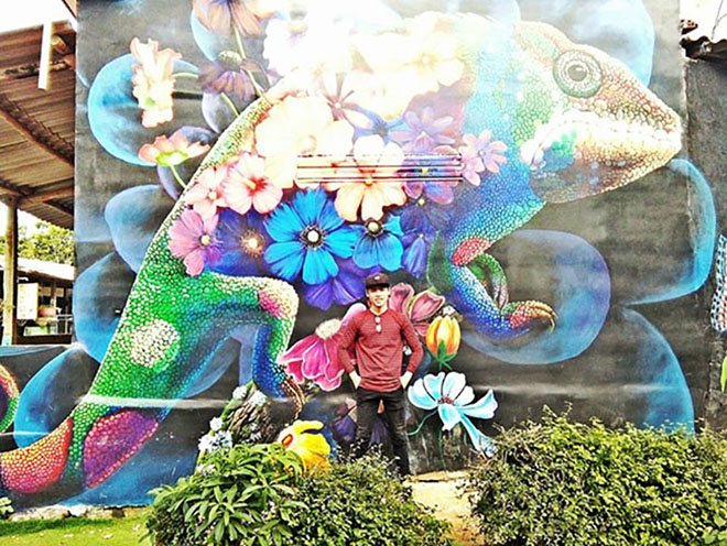 Một góc tuyệt đẹp tại ngôi làng bích họa 3D với bức bích họa sống động.