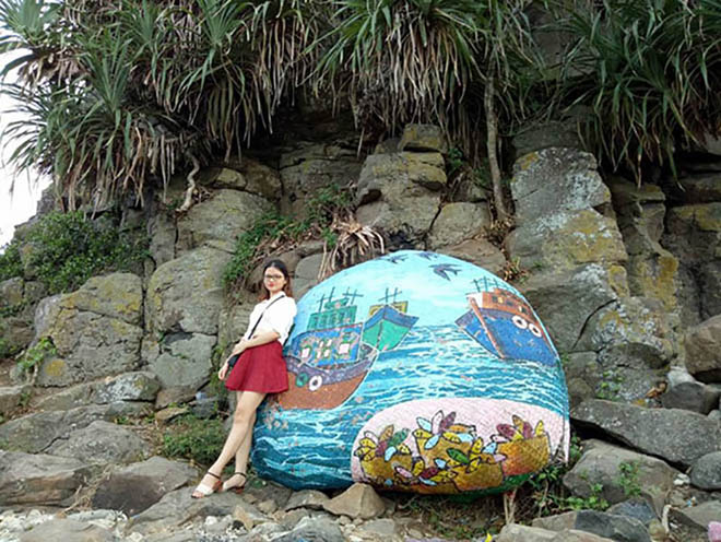 Giờ đây tới Quảng Ngãi, ngoài không gian thiên nhiên biển trời hoang sơ gắn với cánh đồng bậc thang, bãi đá trầm tích núi lửa xếp chồng lên nhau kỳ thú ở Gành Yến bạn có thể ghé làng bích họa 3D để “check – in” sống ảo.