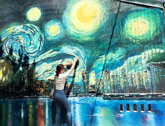 Giới trẻ đứng ngồi không yên bởi làng bích họa 3D phát sáng trong đêm