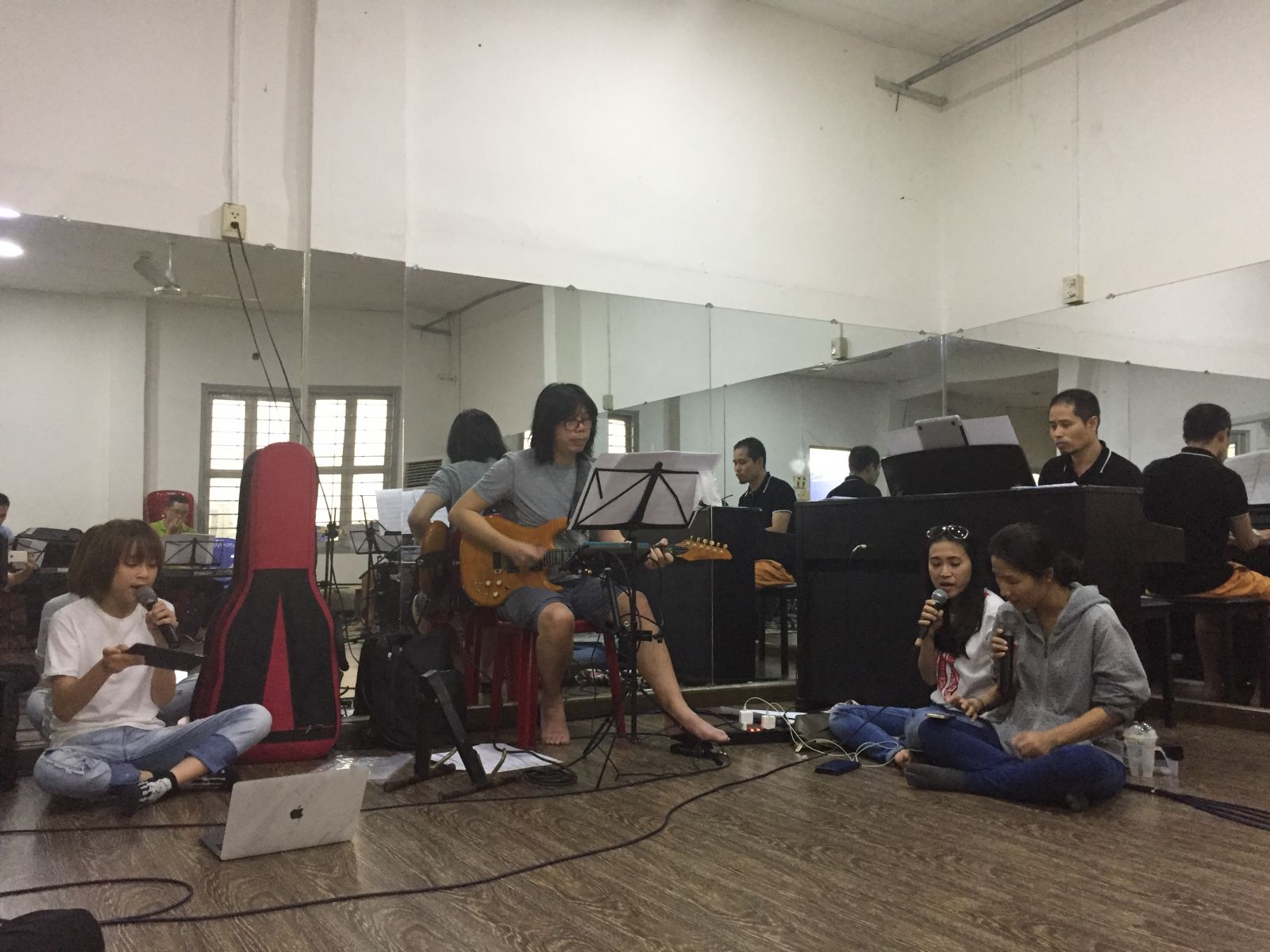 Mọi người hình dung việc xếp lịch tập cho ca sĩ sẽ rất nhức đầu nhưng không phải như ngày xưa, chỉ khi tập trung lại chúng tôi mới tập được. Chúng tôi thu những bản phối và gửi email cho ca sĩ. Họ sẽ tự tập và tập cùng nhau theo cách mà họ thấy tiện nhất, sau đó ghi âm lại bằng điện thoại để trao đổi với chúng tôi. Ca sĩ sẽ có vài ngày tập và ráp với ban nhạc, sau cùng chúng tôi chạy chương trình vài lần trước đêm diễn.