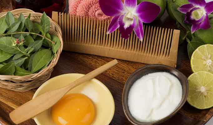 Trộn 1 – 2 lòng đỏ trứng gà với 1 hộp sữa chua không đường‏, rồi ủ hỗn hợp lên tóc trong 15 – 20 phút kết hợp massage thư giãn