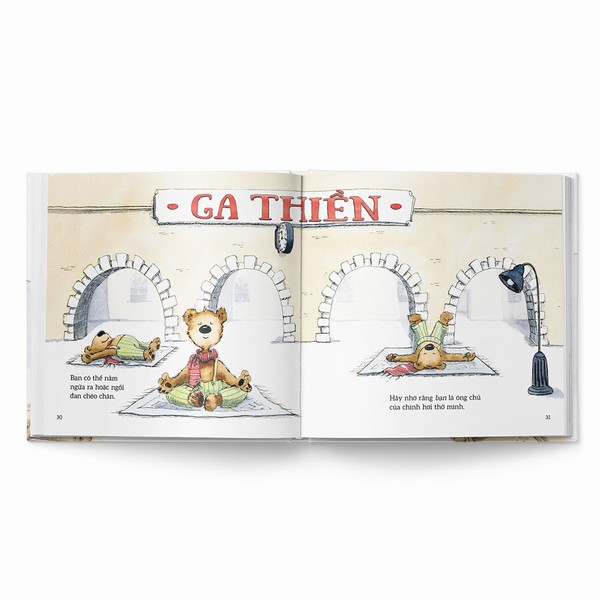 Còn với tác phẩm “Ga thiền” là chuyến tàu của nội tâm mà thông qua đó, trẻ có thể học cách quan sát những toa tàu cũng chính là quan sát những suy nghĩ bận rộn, những cảm giác khó chịu và thất vọng của bản thân mình. Và rồi chỉ cần vẫy tay chào tạm biệt với tâm trí đang nhảy nhót bằng cách có mặt với hơi thở và cơ thể, trẻ có thể tìm lại sự bình an tĩnh lặng bên trong.