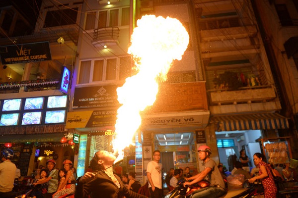 Nghệ thuật thổi lửa đường phố là một trong những môn nghệ thuật nguy hiểm, thậm chí gây tử vong trong lúc biểu diễn
