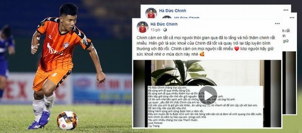 “Chinh cám ơn tất cả mọi người thời gian qua đã lo lắng và hỏi thăm Chinh rất nhiều. Hiện giờ là sức khoẻ của Chinh đã tốt và quay trở lại tập luyện bình thường với đội rồi. Chinh cám ơn mọi người rất nhiều. Mọi người hãy giữ sức khoẻ ở mùa dịch này nhé”, Hà Đức Chinh thông báo.
