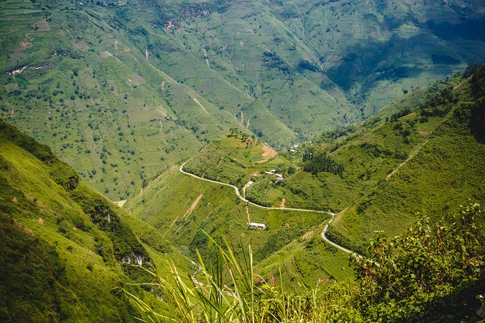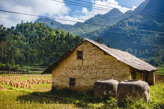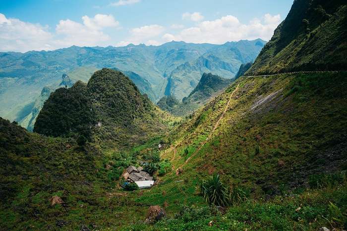 Dọc đèo Mã Pí Lèng có những ngôi nhà nhỏ nằm bên triền núi