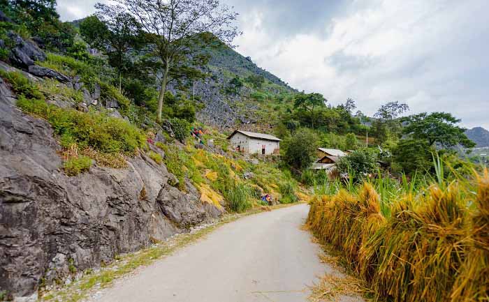 Đường vào Lũng Cú mùa thu hoạch lúa