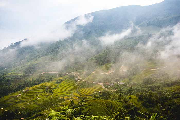 Hoàng Su Phì lúc chiều muộn với mây mù giăng phủ