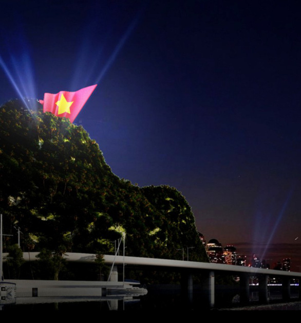 Phối cảnh ý tưởng dựng lá cờ Tổ quốc bằng kim loại trên đỉnh núi Bài Thơ