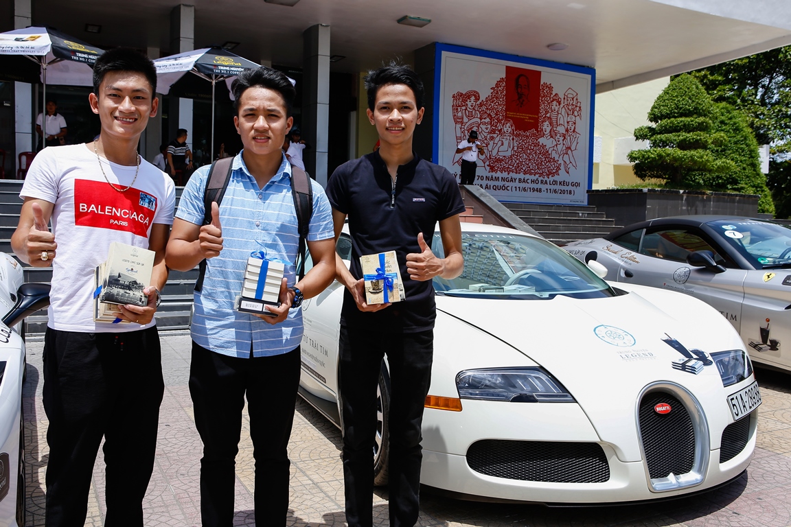 “Tụi em theo dõi thông tin trên mạng, thấy Hành trình từ Trái tim ghé ở Huế hôm nay nên từ 9 giờ sáng tụi em đã chạy xe từ Quảng Trị vào Huế để kịp nhận sách và có cơ hội gặp đoàn. Sauk hi nhận được sách, tụi em sẽ chạy về lại Quảng Trị luôn”, Nghĩa nói.