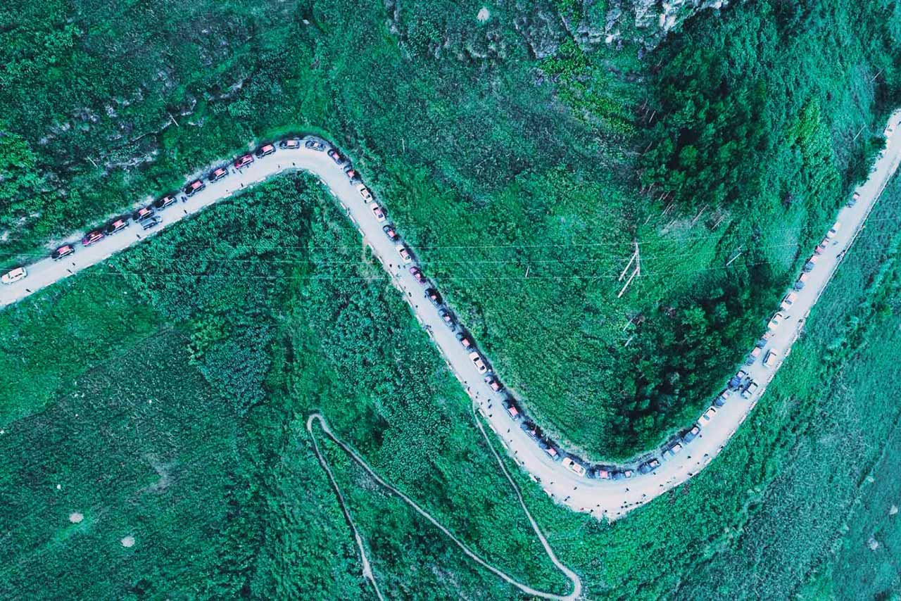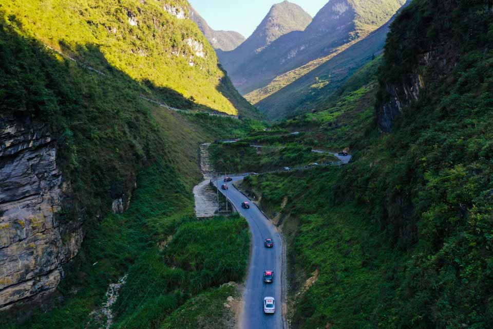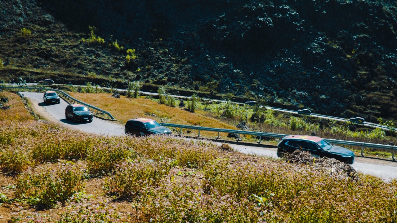 Dòng xe VinFast với gần 100 chiếc xe vượt qua những cung đèo quanh co, một bên là núi cao, bên kia vực thẳm. Những khúc cua tay áo khiến các tay lái phải “nín thở” vì độ hiểm trở và vì khung cảnh tuyệt đẹp. Từ trong xe, các VinFaster có thể phóng hết tầm mắt ngắm nhìn vẻ đẹp Hà Giang huyền thoại.