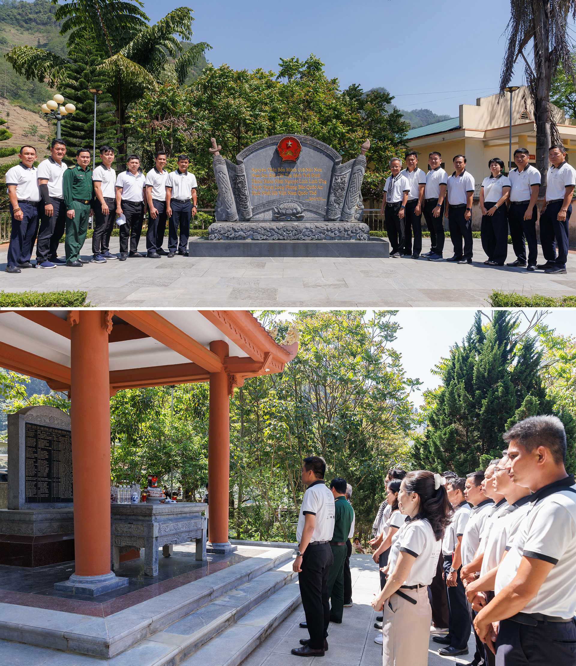 Đến với Đồn Biên phòng Sì Lờ Lầu tỉnh Lai Châu, việc đầu tiên của đoàn Hành trình là nghiêm trang bước đến thắp nén hương trước bia tưởng niệm các liệt sĩ đã anh dũng hy sinh bảo vệ từng tấc đất biên cương vào tháng 2.1979