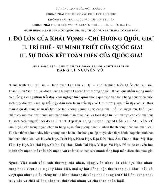 Cũng như các địa phương trên mọi miền đất nước mà hành trình đã đến, mục đích của Hành trình từ Trái tim đến với tỉnh Trà Vinh lần này là để trao tặng cho học sinh sinh viên ở đây những cuốn sách quý trong 5 đầu sách do Chủ tịch Đặng Lê Nguyên Vũ dày công chắt lọc gồm Nghĩ Giàu Làm Giàu, Khuyến Học, Quốc Gia Khởi Nghiệp, Đắc Nhân Tâm, Không Bao Giờ Là Thất Bại – Tất Cả Chỉ Là Thử Thách.