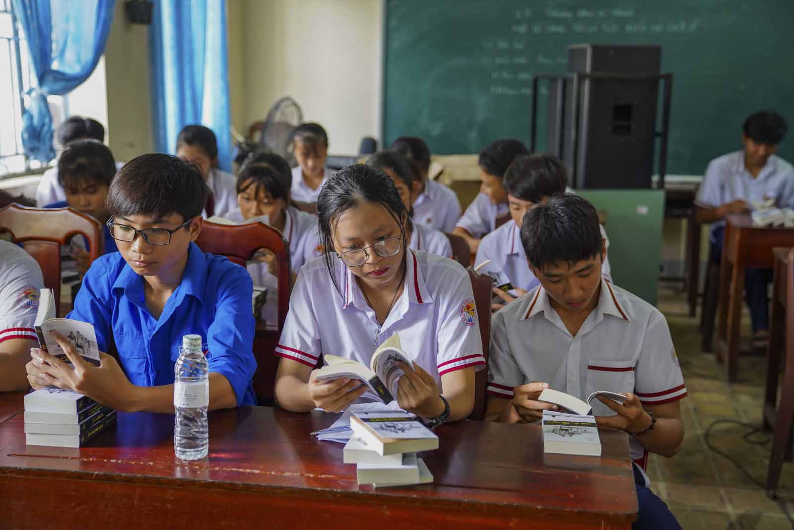 Đây là nguồn sách quý có thể giúp các em ở vùng sâu, vùng xa đổi đời, thầy Trần Văn Trí – Hiệu trường THCS Trần Ngọc Hoằng – Cần Thơ xúc động chia sẻ: “Tụi nhỏ chưa bao giờ hào hứng, mong chờ để được nhận sách đến như vậy. Các em ở đây có khát vọng thoát nghèo lắm, bởi thế chỉ có tiếp cận với sách mới giúp bọn trẻ rút ngắn con đường đi đến thành công, có thể góp sức mình xây dựng quê hương, đất nước.”