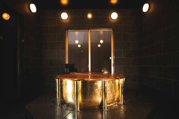 Bồn tắm vàng được đặt tại khu phức hợp suối nước nóng tự nhiên mới mở cửa trở lại ở công viên, nơi đón rất nhiều khách du lịch Trung Quốc và Hàn Quốc đến nghỉ dưỡng. Khu nghỉ mát tại Huis Ten Bosch nổi tiếng với suối nước nóng có màu nâu và mặn. Các phòng tắm được bài trí theo các chủ đề khác nhau.