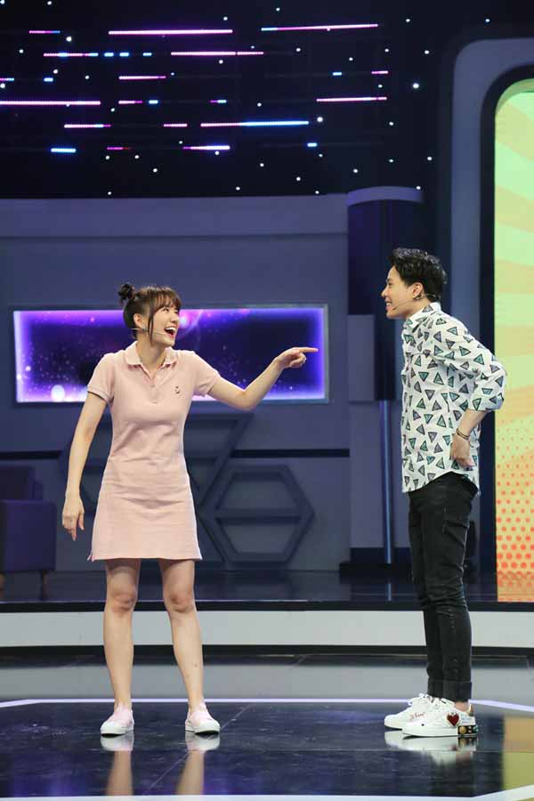 Đến lúc này, Hari Won bị sượng đỏ mặt và đành tìm cách chống chế. “Cô nói vậy cho vui thôi, chứ cô biết cô sai. Cô giỡn với mấy con thôi chứ đừng bắt chước cô nói vậy là sai đó nha”, Hari Won gượng cười đáp trả đàn em. Thế nhưng “bà xã” Trấn Thành cũng không phải dạng vừa khi chờ một cơ hội khác “trả đũa” Trịnh Thăng Bình.