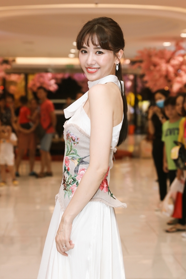 Xuất hiện tại sự kiện, ‘bà xã’ Trấn Thành gây ấn tượng với thiết kế váy trắng nữ tính, khoe nhan sắc rạng rỡ. Nữ ca sĩ bày tỏ niềm tự hào được mọi người yêu thương, và cho biết sẽ cùng đồng hành cùng ê-kíp trong việc chia sẻ những kinh nghiệm trong việc giúp mọi người xinh đẹp và tự tin hơn, đặc biệt là các chị em phụ nữ.