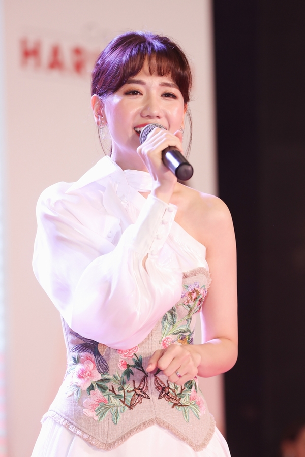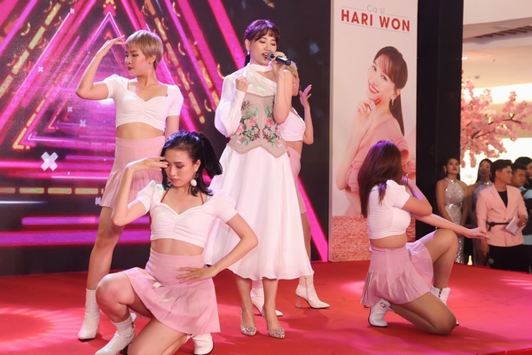 Bên cạnh những chia sẻ thú vị trong vai trò đại sứ thương hiệu, Hari Won còn gây bất ngờ khi thể hiện ca khúc “It’s you” tặng khán giả. Đặc biệt, trước sự yêu cầu của mọi người, bà xã Trấn Thành không ngại hát lại bản hit “Anh cứ đi đi”, bài hát từng gây bão trên các bảng xếp hạng âm nhạc. Cô kết hợp cùng vũ đoàn để mang đến màn trình diễn ấn tượng, sôi động hơn.