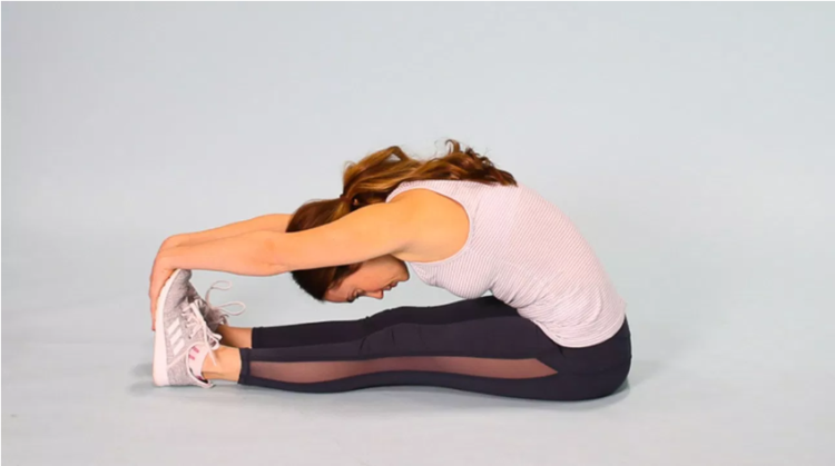 Bài tập này không những giúp bạn thả lỏng phần chân mà còn thư giãn phần lưng và vai. Khi tập, bạn hãy thật từ từ chứ đừng ép bản thân quá nhé.