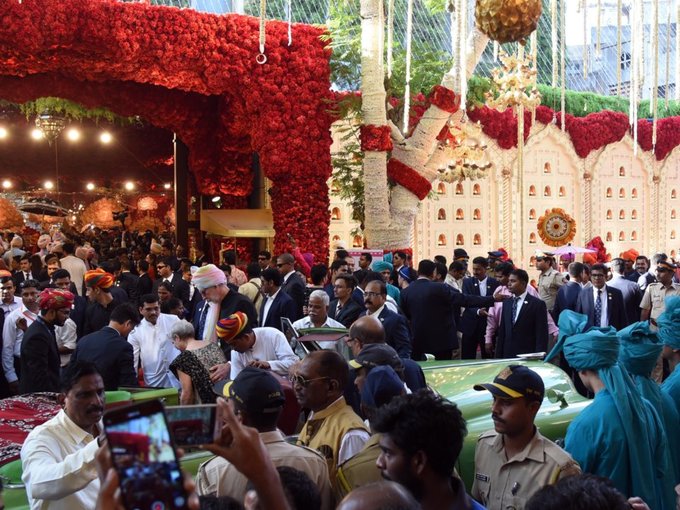Lễ cưới được tổ chức tại nhà của gia đình Ambani ở Mumbai với sự tham dự của khoảng 600 khách. Tổng chi phí cho đám cưới ước tính khoảng 100 triệu USD. Dù vậy, người phát ngôn của Reliance cho biết con số này không lớn hơn 15 triệu USD.