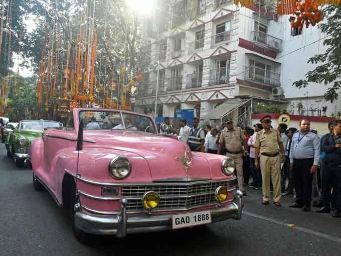 Khách đến dự được chở bằng xe hơi cổ điển.