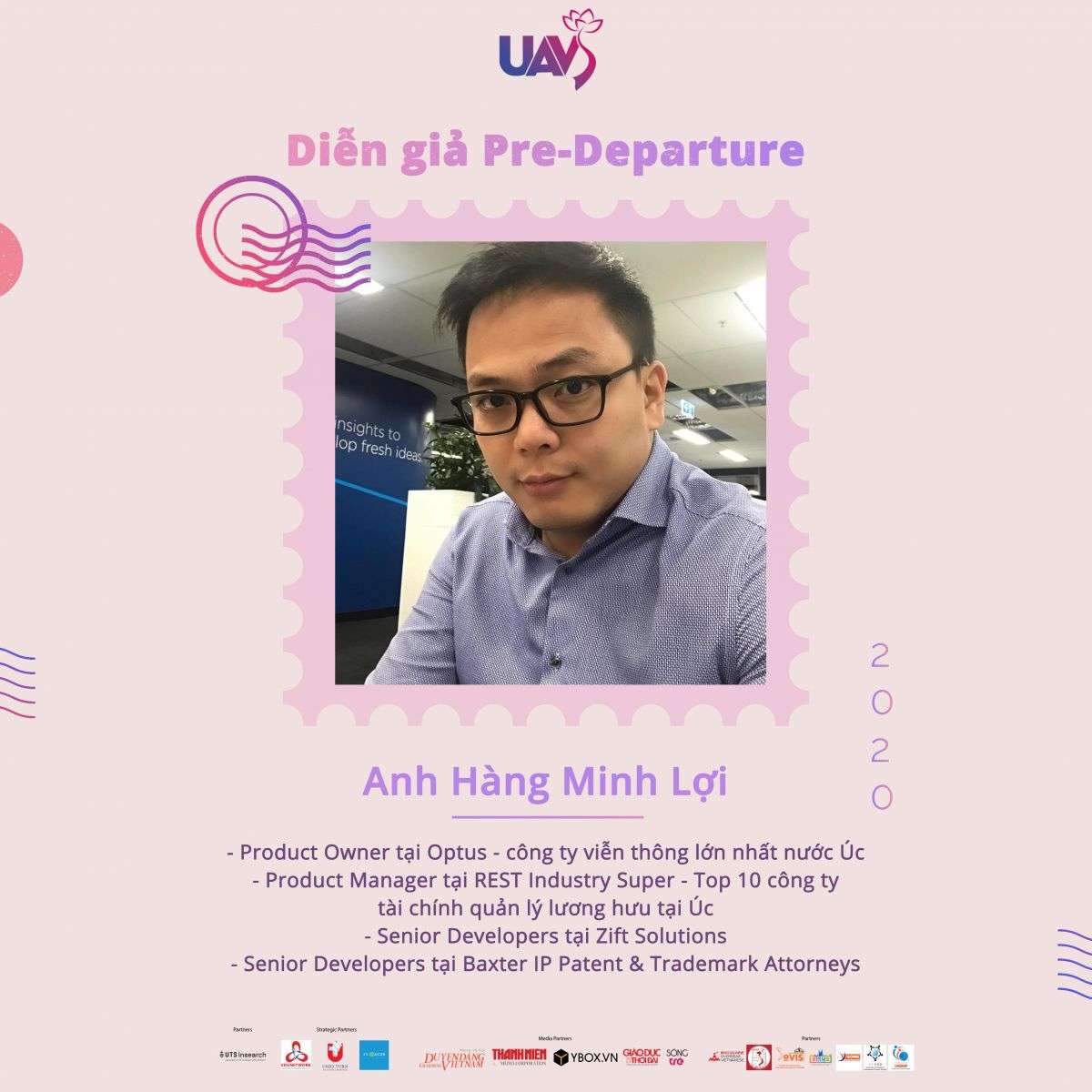 Anh Minh Lợi đã có hơn 10 năm trải nghiệm sinh sống, học tập và làm việc tại Úc. Với những kiến thức tích lũy được trong lĩnh vực IT và Digital, anh quay về Việt Nam và thành lập Start-up công nghệ Okivia – ứng dụng livestream thương mại điện tử. Anh Minh Lợi là cựu sinh viên trường đại học Công Nghệ Sydney (UTS), tốt nghiệp cử nhân chuyên ngành IT. Với bề dày kinh nghiệm của mình, anh Minh Lợi chắc chắn sẽ có vô vàn câu chuyện thú vị và những lời khuyên hữu ích chia sẻ với các bạn về nền giáo dục của đất nước Úc.