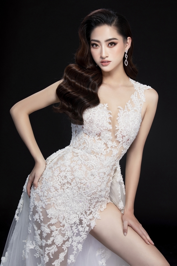 Hai mẫu đầm được Lương Thùy Linh chuẩn bị là những thiết kế đến từ bàn tay tài hoa của NTK Lê Thanh Hòa – người luôn đồng hành cùng nhan sắc Việt trên các đấu trường nhan sắc từ trong nước tới quốc tế. NTK Lê Thanh Hòa đã vô cùng hiểu vẻ đẹp của Hoa hậu Lương Thùy Linh khi cả 2 chiếc đầm dạ hội đều có thiết kế xẻ đùi khá táo bạo. Thiết kế xẻ đùi vốn được Hoa hậu Lương Thùy Linh yêu thích sẽ giúp nàng hậu triệt để khoe trọn body đạt chuẩn cùng đôi chân “cực phẩm” 1m22 của mình. Đặc biệt, fan tinh ý nhận ra “chiến thuật màu sắc theo phong thủy” vẫn được Lương Thùy Linh tận dụng cho đêm chung kết khi tiếp tục sử dụng hai gam màu “trắng – xanh” mà Miss World đặc biệt yêu thích.