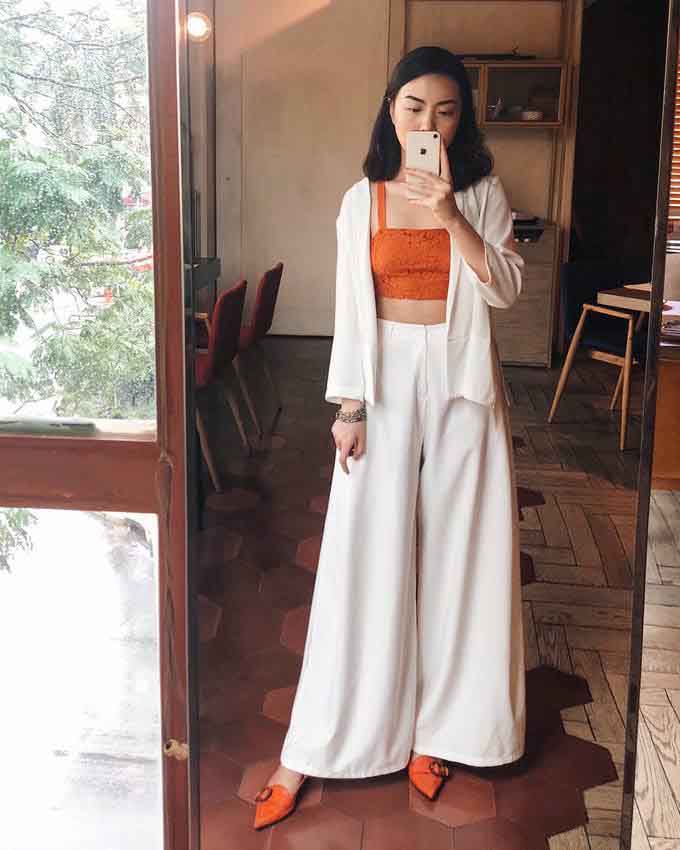 Ưu điểm của kiểu quần này là kéo dài chân, dù dạng quần ống loe, ống rộng đã trở thành mốt cả chục năm nay. Đây cũng là một kiểu thời trang mà nhiều nàng công sở yêu mến.