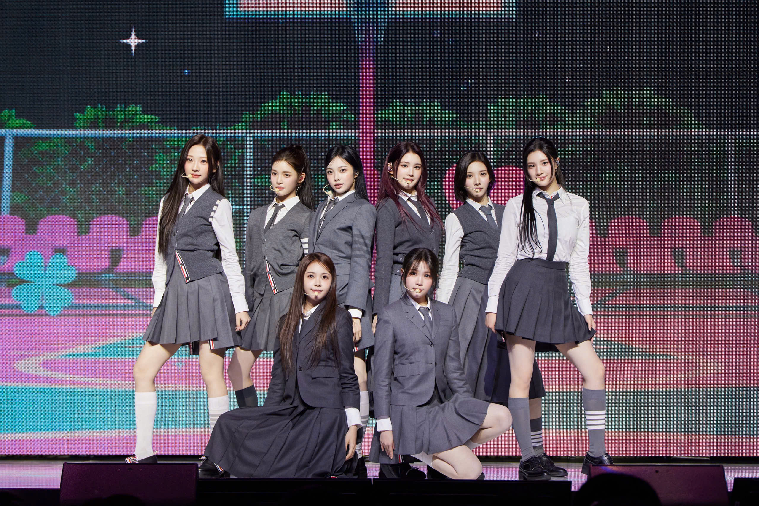 Hearts2Hearts biểu diễn trong buổi họp báo ra mắt EP đầu tay "Focus" tại Seoul - Nguồn: SM Entertainment