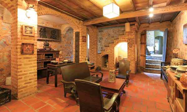 Bên trong ngôi nhà được bày trí theo phong cách cổ với nội thất được làm từ những vật liệu bản địa như gỗ, mây, tre… Tạo cảm giác dễ chịu và thân thiện môi trường. Những nội thất đặc trưng của ngôi nhà cổ là bàn thờ, câu đối, sập gụ tủ chè hoa văn họa tiết tinh xảo biến ngôi nhà không chỉ là nơi để ở mà nó như là một tác phẩm kiến trúc vừa cổ điển vừa độc đáo.