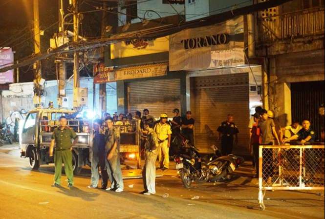 Hiện trường vụ 2 “hiệp sĩ” bị đâm tử vong tối qua – Ảnh: Internet