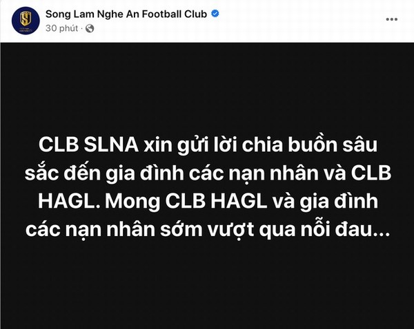 CLB SLNA gửi lời động viên, hy vọng HAGL sớm vượt qua nỗi đau