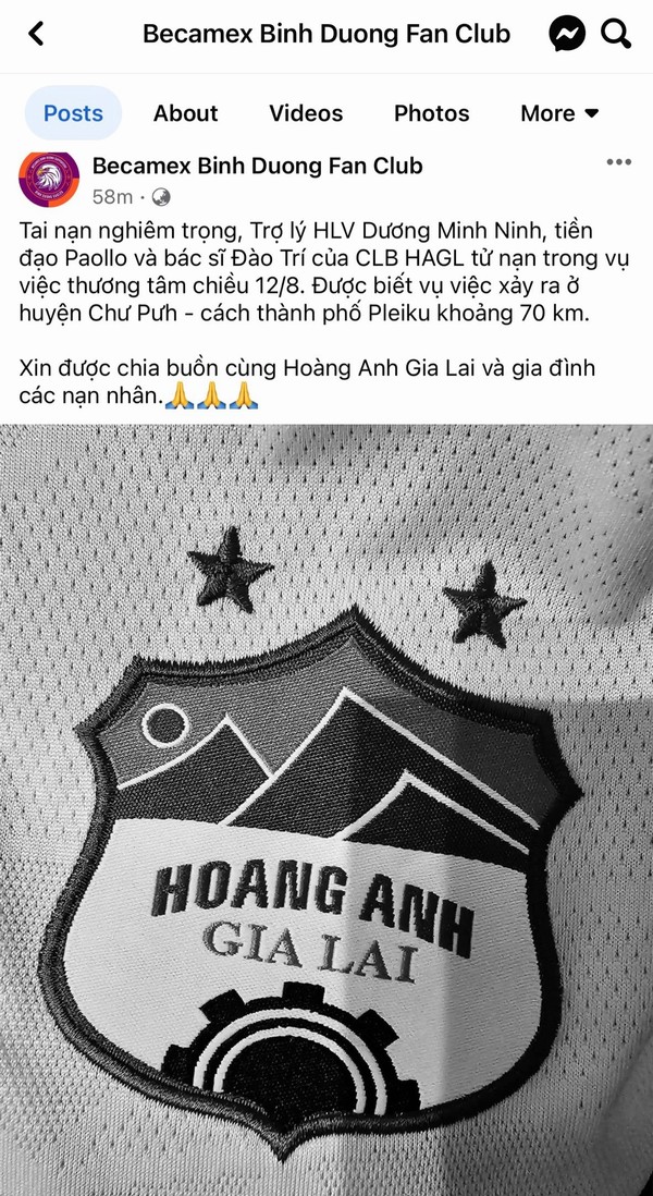 CLB HAGL vừa nhận hung tin khi 3 thành viên của đội tử vong vì tan nạn giao thông, trong đó có trợ lý HLV Dương Minh Ninh, tiền đạo Paollo Oliveira và bác sĩ Đào Trọng Trí.