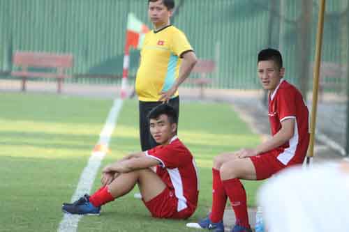 Trong sân, một số cầu thủ dính chấn thương chưa thể tập luyện. Ảnh: Minh Hùng.