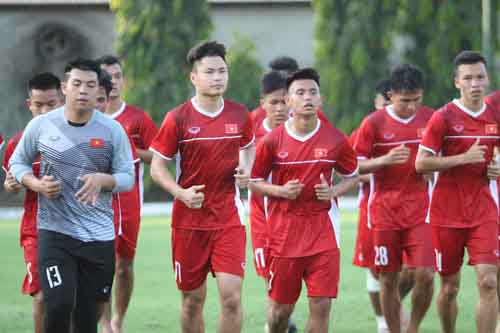 Chiều 16/5, U19 Việt Nam có buổi tập đầu tiên tại sân của Trung tâm đào tạo bóng đá trẻ Việt Nam VFF. Đây là quá trình tập trung chuẩn bị cho giải U19 Đông Nam Á diễn ra vào tháng 7 tới. Ảnh: Nguyễn Nam.