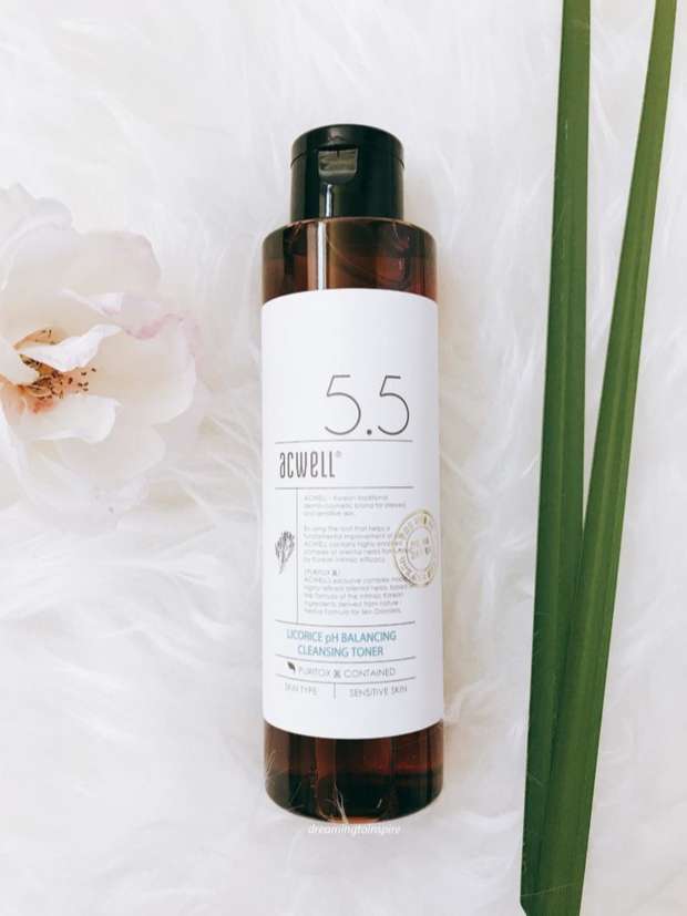 Toner: Beth sử dụng toner chiết xuất từ cam thảo Acwell Licorice pH Balancing Cleansing Toner (khoảng 400.000 VNĐ) với độ pH cân bằng giúp làm dịu, dưỡng ẩm và dưỡng trắng da.