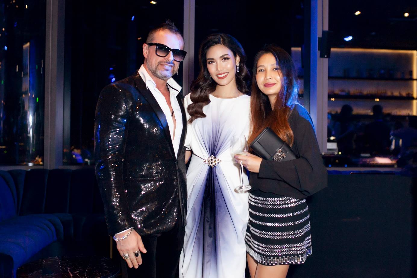“Đêm tiệc vượt qua mong đợi của tôi bởi không gian vô cùng sang trọng và đẳng cấp, đặc biệt là tầm nhìn “triệu đô” hoàn toàn xứng đáng để tổ chức những đêm tiệc đẳng cấp như Glitz & Glamour”, siêu mẫu Lan Khuê (giữa) chia sẻ.
