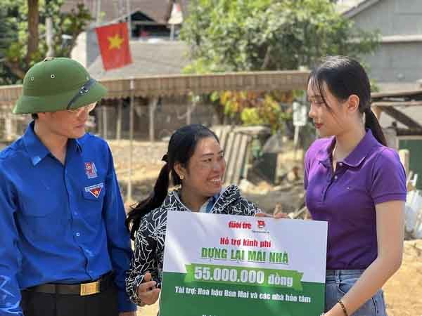 Hoa hậu Ban Mai ‘dựng lại mái nhà’ cho người dân vùng lũ
