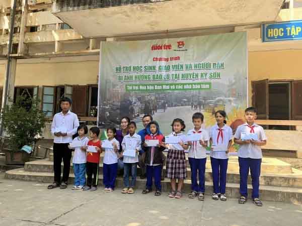 Vào ngày 17.10 vừa qua, Hoa hậu Ban Mai đã có chuyến thiện nguyện cùng đoàn công tác của báo Tuổi Trẻ và Tỉnh Đoàn Nghệ An. Nàng hậu đến Kỳ Sơn – khu vực chịu ảnh hưởng nặng nề nhất để trao học bổng và tiền hỗ trợ cho học sinh, giáo viên bị thiệt hại sau đợt lũ quét. Người đẹp sinh năm 2000 không khỏi xúc động khi tận mắt chứng kiến những hậu quả mà người dân địa phương phải gánh chịu.