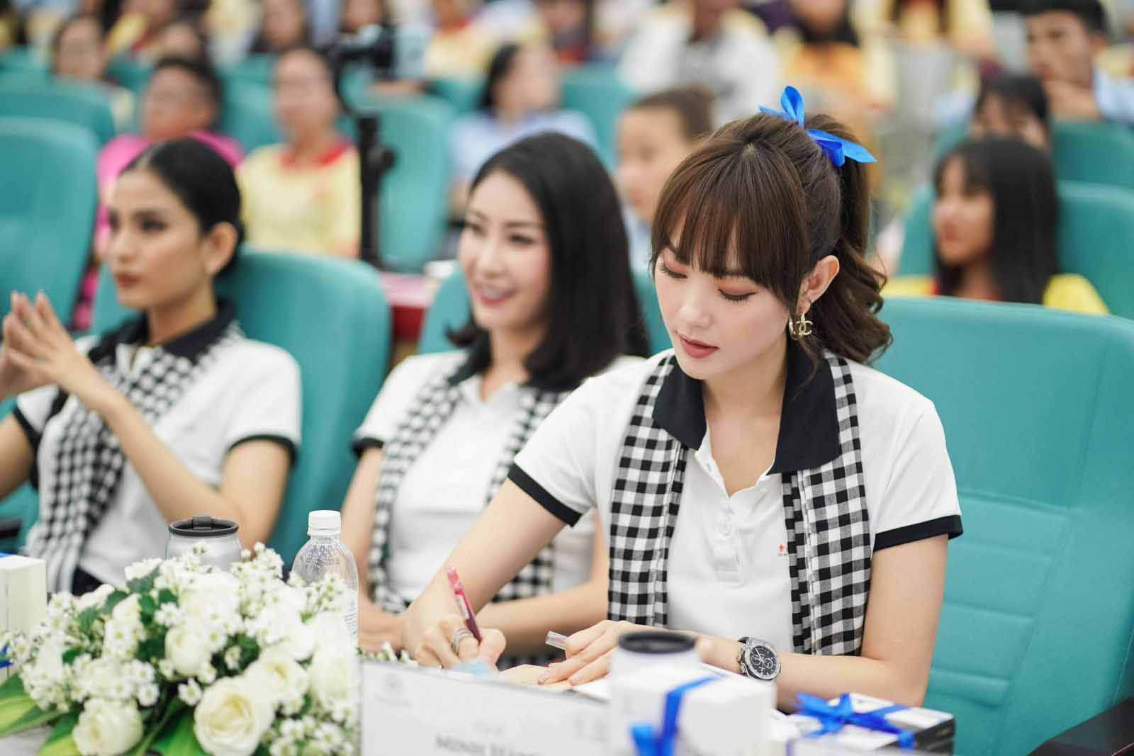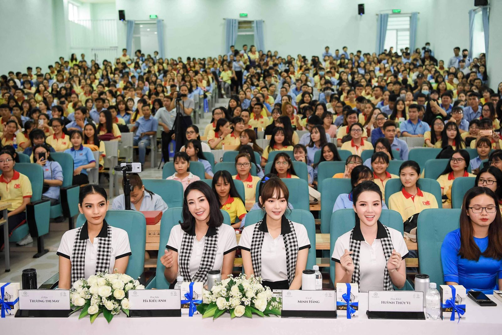 Rất mong chờ và hạnh phúc, Hoa khôi Huỳnh Thúy Vi đã từng đồng hành với chương trình, đặc biệt hôm nay có mặt tại ngôi trường mà Vi đang học thạc sĩ, cô không quên nhắn nhủ với đàn em của mình rằng: “Cuộc đời của mỗi chúng ta sẽ có những lúc chênh vênh, các bạn không nên bỏ cuộc, hãy suy nghĩ rằng xung quanh vẫn còn rất nhiều người yêu thương và lo lắng cho mình, hãy dành thời gian xác định mục tiêu của mình, dành thời gian để trải nghiệm, đọc sách, biết đâu chúng ta lại tìm được một con đường cho tương lai tốt đẹp hơn.”