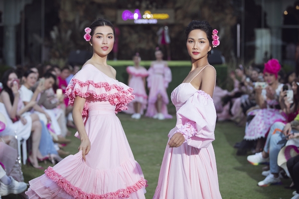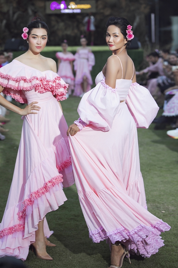 Diện lên người những mẫu thời trang được cắt may trên nền những chất liệu quen thuộc như linen, cotton, kết hợp cùng những đường nét phối ren hoa văn mang đến sự nhẹ nhàng, thoáng mát. H’hen Niê và Lệ Hằng vô cùng nổi bật, trở thành tâm điểm chú ý tại sự kiện.