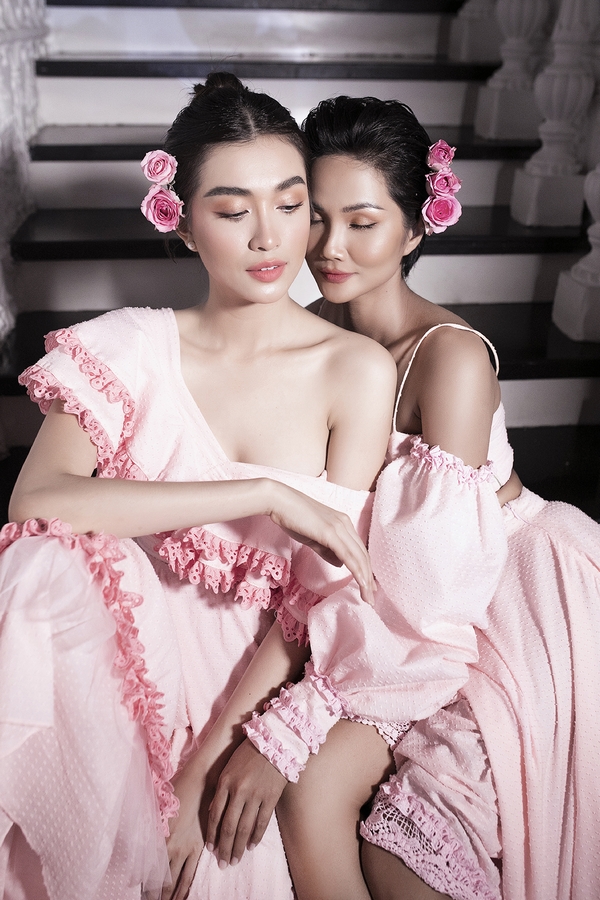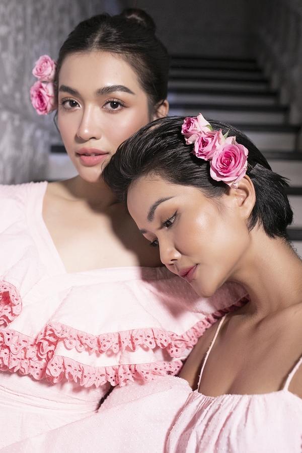 Hoa hậu H’hen Niê và Á hậu Lệ Hằng dịu dàng với sắc hồng