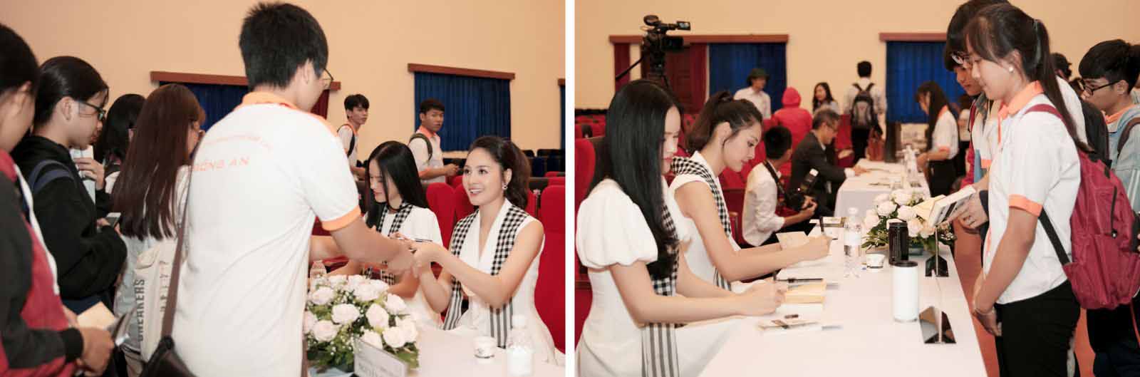 Hàng trăm sinh viên của trường đã đến từ rất sớm, hội trường không còn chỗ trống, những câu chuyện truyền cảm hứng của các vị khách mời khiến không khí của buổi giao lưu vô cùng náo nhiệt và hào hứng. Lần thứ 2 tham gia Hành trình, Hoa hậu Hương Giang tự hào vì được góp phần mang ánh sáng tri thức phụng sự cộng đồng: “Cám ơn “Hành Trình Từ Trái Tim” cho Hương Giang cơ hội được giao lưu với các bạn sinh viên và được sống lại tuổi trẻ một lần nữa. Càng gắn bó với Hành trình, thì Giang cảm thấy càng đi càng thích và được đóng góp một chút sức lực để chung tay trao tặng những cuốn sách quý đến với thế hệ thanh niên trẻ”.