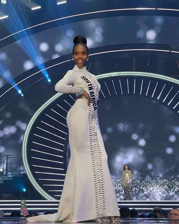 Lalela Mswane trên sân khấu Miss Universe 2021. Ảnh: @Lalela Mswane.