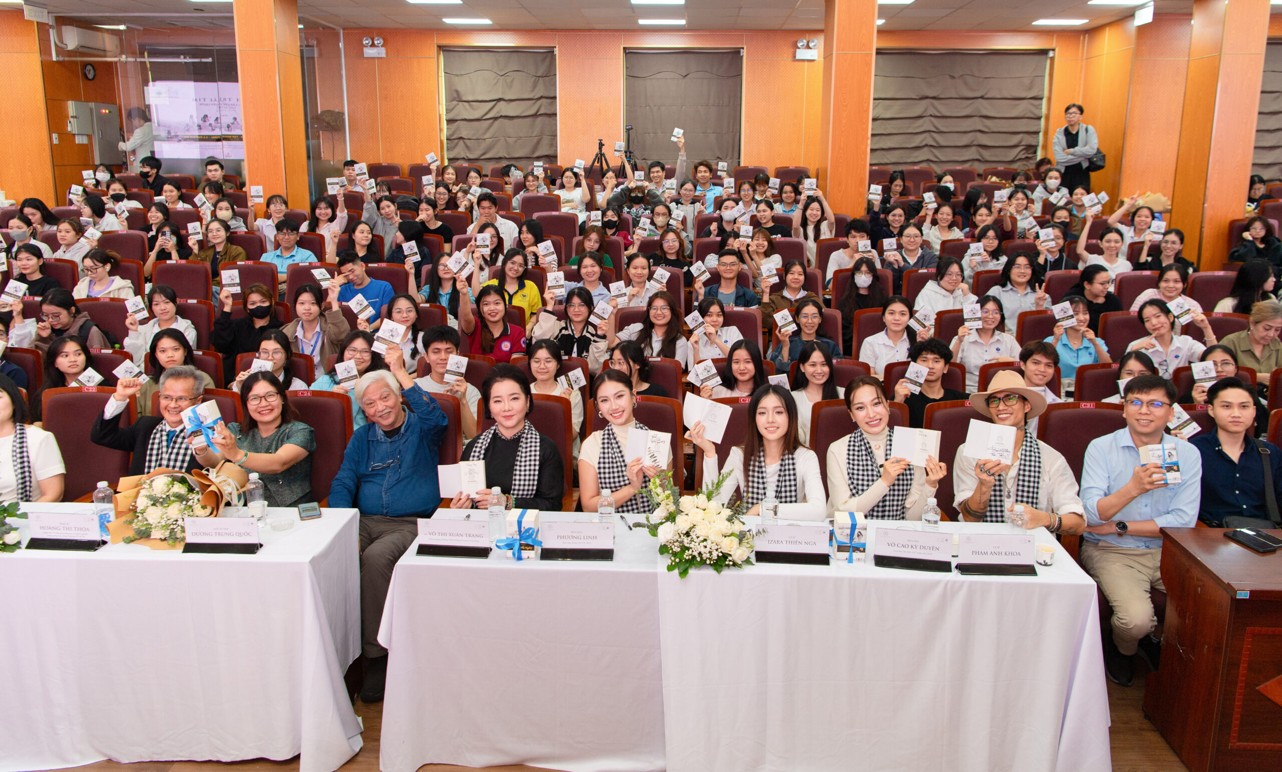 Họa sĩ – Nhà thiết kế Phan Anh Thư và Hoa hậu Hoàn Vũ Việt Nam Phương Linh trao tặng những cuốn sách quý giúp sinh viên trau dồi tri thức và phát triển bản thân.