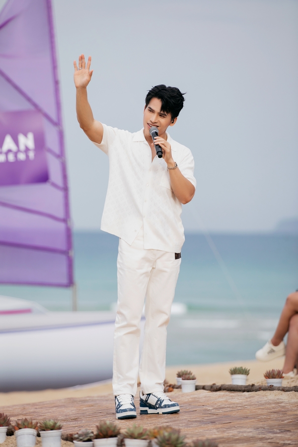 Là ca sĩ khách mời trong show diễn, Quốc Thiên đã thể hiện giọng ca ngọt ngào, đầy cảm xúc của mình trước biển khơi hùng vĩ.